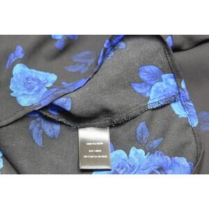 This stylish Torrid Harper Plus Size 4 Blouse is perfect for adding a touch of elegance to your wardrobe. Featuring a vibrant black background adorned with a striking blue rose floral pattern, this V-neck top boasts fashionable 3/4 sleeves. Made from 100% polyester, it offers a comfortable and flowing fit. The blouse is designed with a high-low hem for a modern silhouette and includes roll-tab sleeves for versatile styling options. Ideal for various occasions, from casual outings to more dressed-up events, this top combines comfort with a chic aesthetic. The measurements indicate an armpit to armpit size of approximately 27 inches, a sleeve length from shoulder to cuff of about 20 inches, and a total length of around 28 inches at the front and 31 inches at the back. Its excellent used condition ensures it's ready to wear and impress. Check all pictures for measurements and further details to ensure a perfect fit.