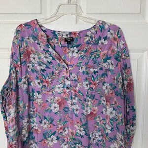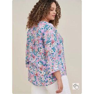 Torrid Harper Pullover Blouse Challis Floral Purple 3/4 Roll Tab Sleeve Size 1X