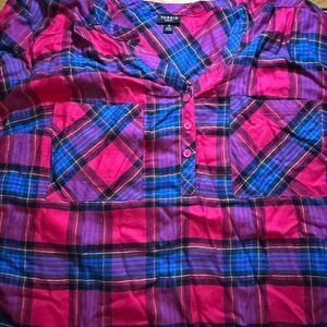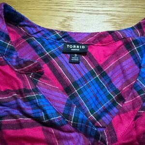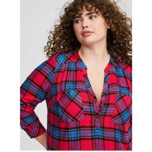 Torrid Harper Softest Flannel Tunic Pullover 3x Ana Plaid Virtual Pink