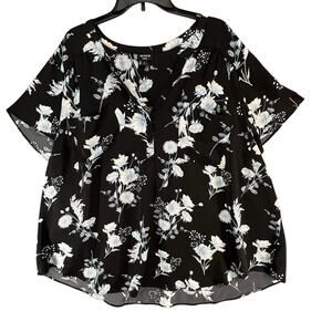 Torrid Harper Studio Blouse 5X Black Floral Crepe De Chine Flutter Career Casual