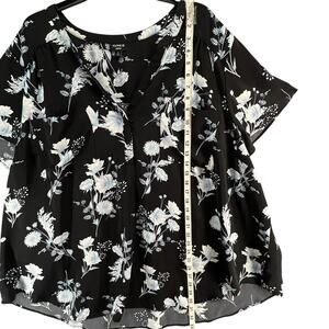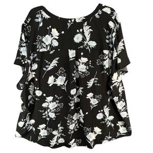 Torrid Harper Studio Blouse Womens Size 5 Black Floral Crepe De Chine Flutter Sleeve