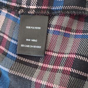 Stylish Torrid “Harper” plaid blouse in a beautiful pink, blue, and black colorway. Lightweight and semi-sheer polyester fabric with a relaxed, flowy fit that’s perfect for layering. Features a V-neckline, short sleeves, and a curved high-low hem for a flattering silhouette.