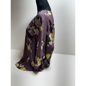 Torrid Harper Women’s Blouse Sz 2 Purple Floral 3/4 Roll Tab Sleeve V Neck Business Casual
