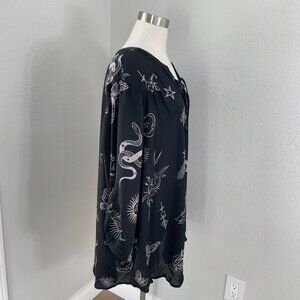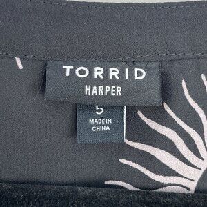 Torrid Harper Womens Plus 5X Black Tattoo Print Lace Up Blouse Roll Tab Sleeve