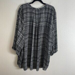 Torrid Harper Womens Plus 5X Black White Plaid Blouse Roll Tab Sleeve Shirt Top