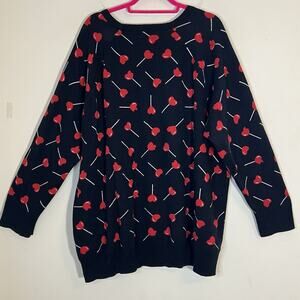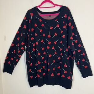 Torrid Heart Lollipops Long Sleeve Sweater 4X Black Red Whimsigoth Kidcore