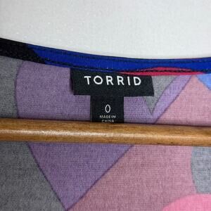 Torrid Heart Print Button‑Front Dress Size 0X Purple Blue Flowy Midi