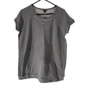 Torrid Heather Embellished Rhinestone Raglan Short Sleeve Sweatshirt Gray Sz 00