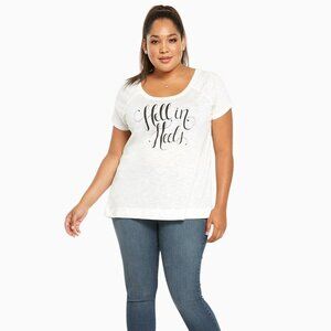 Fair warning: we're known to be "hell in heels." But we're also known for being stylish too; note the white slub knit on this tee and the strappy lattice back. The banded bottom complements our shape (like you didn't already notice).