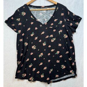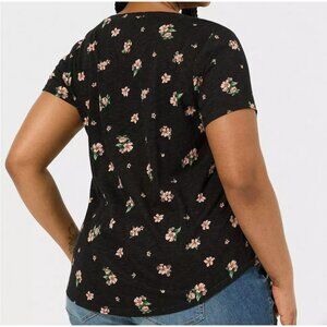 Torrid Heritage V-Neck Pocket Tee Slub Jersey Black Pink Floral Womens Size 1 1X