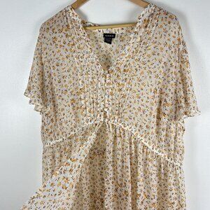 Torrid Hi Lo Floral Sheer Top Boho Chic Blouse Women 3X Beach Swim Suit Cover Up