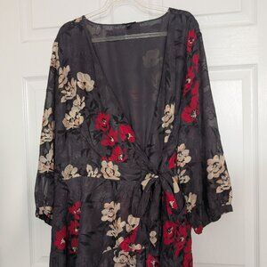 Torrid Womens Dark Slate Gray Hi Low Clip Floral Wrap Blouse Size 2X