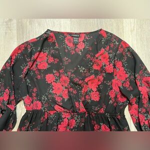 Torrid Hi lo top Floral Black Red women’s size L Size 0 flowing lightweight