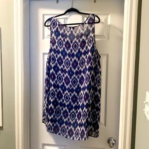 Torrid sheer hi-low top. Blue with white, light blue, and pink accents. Used, but great condition. Size 3.