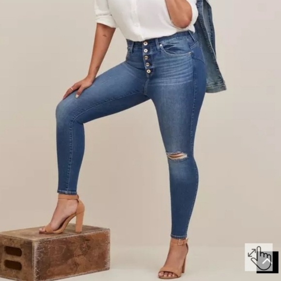 Chic high-rise jeans with button-fly. Stylish blue denim. Perfect for casual wear.