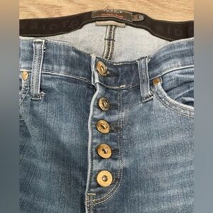 Chic high rise jeans with distressed detailing. BOMBSHELL Skinny 5 Button front design Super cute - very soft Very clean - like new