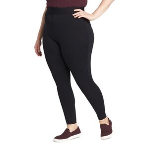 Designed with a sleek, flattering fit and an elasticized waistband, these pants fit more like leggings and are perfect for all-day wear. Soft, stretchy, and endlessly versatile, these are your new go-to for a polished look that doesn’t skimp on comfort. High-rise ponte leggings with elasticized waistband. Pull-on style. 68% rayon, 28% nylon, 4% spandex. Has super skinny leg opening. Machine wash cold with like colors. Gentle cycle. Only non-chlorine bleach when needed. Lay flat to dry. Cool iron as needed. may be dry cleaned. FROM SMOKE/PET FREE ENVIRONMENT