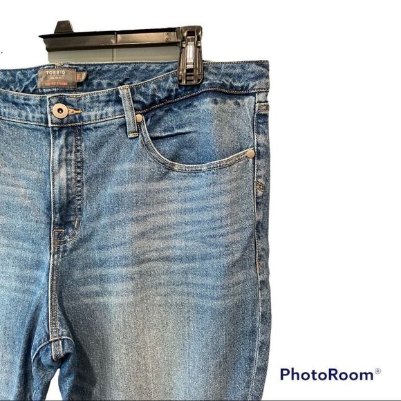 Torrid Feel the Fit Straight Leg Step Hem Jeans. Light wash with distressed look. Five pocket style, zipper and button fly. Great used condition. Torrid size 20S. Plus size 20 with short inseam. Measurements taken laying flat are: