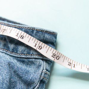 Features: Medium wash high rise straight leg jeans with busted distressed knee holes.