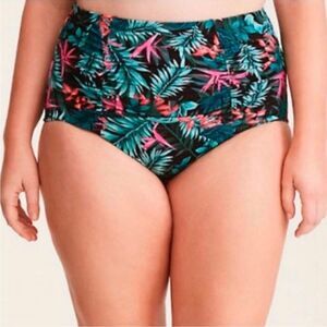 Torrid, Modern, High Waist, Ruched, Swim Bottom, Green Palm Fern Print, Pull-On, Tropical, Fall, Summer, Spring. Torrid High Waist Ruched Swim Bottom Women's Size 2X Green Palm Fern Print.