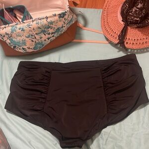 Torrid High Rise Ruched swim bottoms.