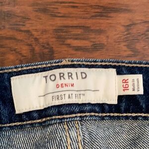 Torrid High-Rise Straight Distressed Ripped Denim contemporary Jeans, raw hem style. Size 16R, view all photos for best representation, in great pre loved condition.