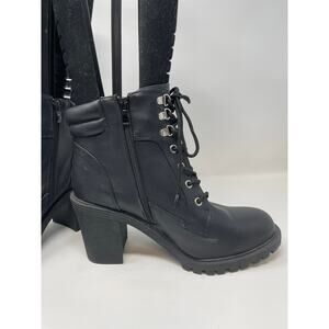 Torrid Hiker Ankle Boots Women's Size 12 Black Faux Leather Lace Upside Zip
