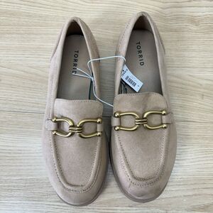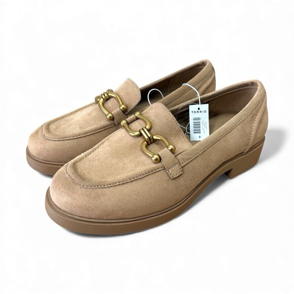 Torrid Horsebit Loafers Womens 9WW Taupe Faux Suede Shoes Chunky NEW Academia