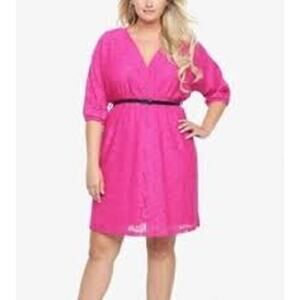 Torrid Hot Pink Barbiecore Lace V front dress with pockets Size 0 or Large