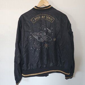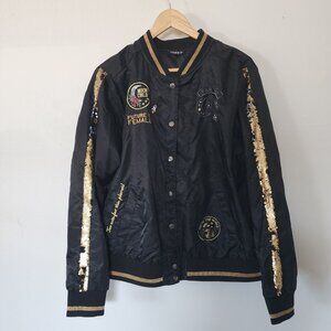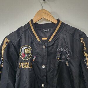 Torrid I Need My Space Jacket Sequin Bomber Pearl Snap Button 2