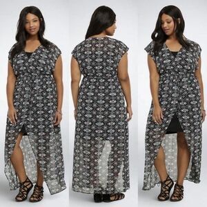 Torrid Ikat Chiffon Multicolored Geometric Print Sheer Dress Women's Size 3 3X