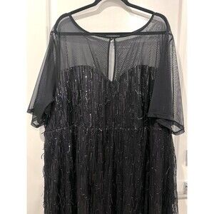 Torrid Illusion Sleeve Skater Dress Sequin Fringe Black Flapper Size 28 or 5X