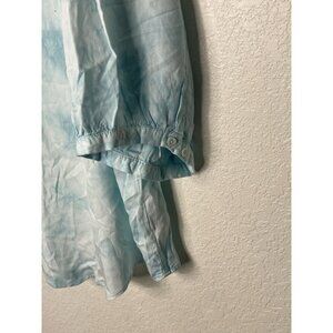 The Torrid Indigo Blue Tie-dyed Peasant Top Shirt in size 4X (26W) is a stylish and comfortable blouse perfect for plus-size women. Made from lightweight rayon, this flowy tunic features a V-neck and long sleeves with ruffle accents for added flair. The tie-dye pattern adds a unique touch to this easy-care shirt, which is machine washable for convenience. Ideal for a casual yet chic look, this peasant top from Torrid is a versatile addition to any woman's wardrobe.
