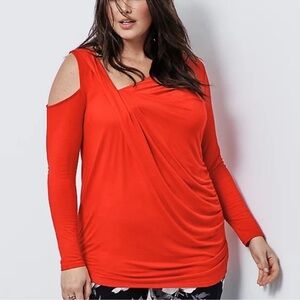 Torrid Insider Collection Drape Front Cold Shoulder blouse Bright Red Size 3X