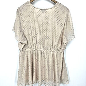 Torrid Ivory Blush Swiss Dot Surplice Babydoll Blouse Top Women's Size 1X