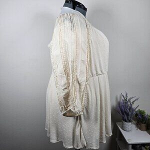 Torrid Ivory Boho Peasant Blouse With Textured Polka Dots & Lace (EUC)