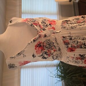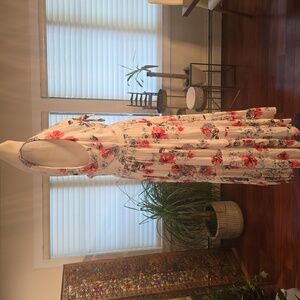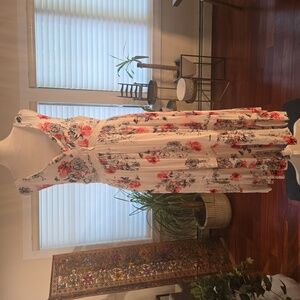 Torrid Ivory Floral Challis Keyhole Ruffled Midi Dress Pink Size 2X