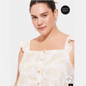 Torrid Ivory Floral Double Gauze Ruffle Button Front Tank Top Sz 2X