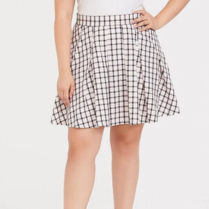 Torrid Ivory Gingham Mini Twill Pleated Skater Skirt in Size 1 (14/16)