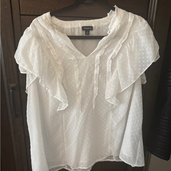 Chic ivory blouse with ruffle details. Lightweight and stylish. Ideal for versatile wear.