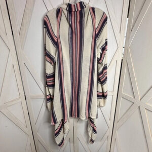 Be beach bonfire ready with this lightweight cardigan featuring purple and pink stripes and an open drape front.