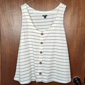 Torrid Ivory & Taupe Stripe Plus Size Woman’s Button Tank Top Size 2XL
