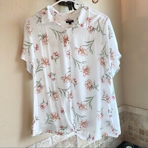 Torrid Ivory Floral Crepe Knot Button Down Top 1X. Gently used condition no holes no stains.  Smoke free home. 24 inch length and 21 inch bust. Bin 6