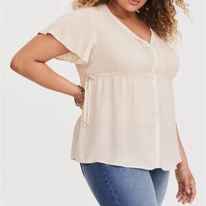 Torrid Ivory Flutter Sleeve Textured Blouse sz 1x