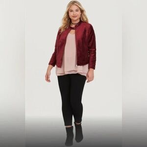 Torrid Jacket Size 4 4X Moto Burgundy Velvet Jacket NWOT