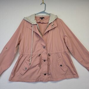 Torrid Jacket Womens 0 or L Pink Coastal Utility Hooded Casual Layering Sporty