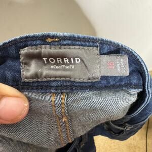 Torrid Jean Shorts Women’s 16 High Rise Cutoff Denim Stretch Blue Frayed Hem
