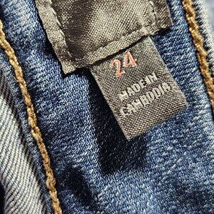 These Torrid denim shorts feature a casual, distressed design with a comfortable fit. They are made of a cotton blend for durability and style.