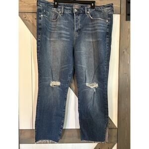 Torrid Jeans Womens Size 20R Med Wash Studded Raw Hem High Rise Straight NWT