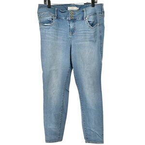 Step into comfort and style with these Torrid 18R jeggings. A light wash denim blend with a flattering mid-rise fit hugs every curve. Perfectly stretchy for all-day wear, they feature classic button detailing and a skinny silhouette. Designed for effortless elegance and versatility, these jeggings are a wardrobe staple.